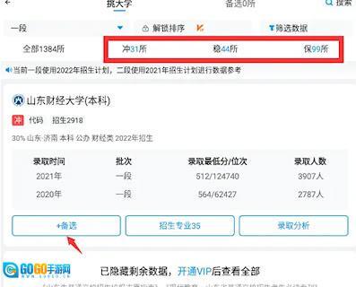 5、在图示位置筛选冲稳保梯度院校。