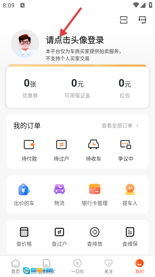 2、接着点击页面上方的头像按钮,进入登录界面。