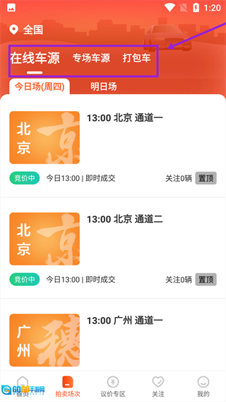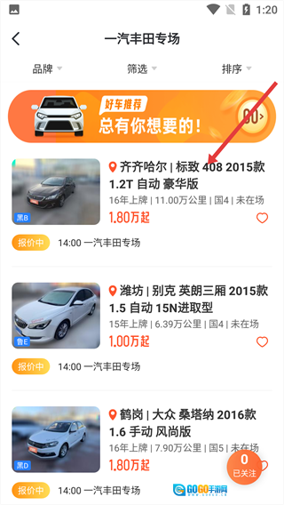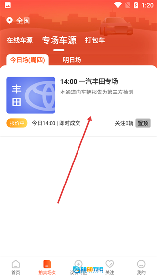 3、以专场车源为例,点击【14:00-一汽丰田专场】,进入展示页面。