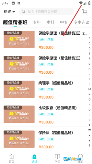 2、进入选课页面后,选择目标课程。