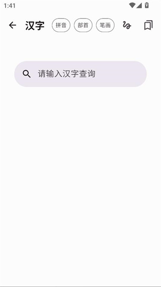2、点击【汉字按钮】,可查询拼音、部首和笔画。