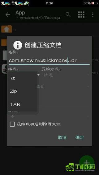 6、打开ZAchiver, 把原来的tar格式的压缩包重命名,复制一下他的名称,之后就可以删掉了,再长按修改后的data文件,选择压缩…格式仍然是tar。
