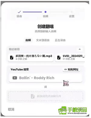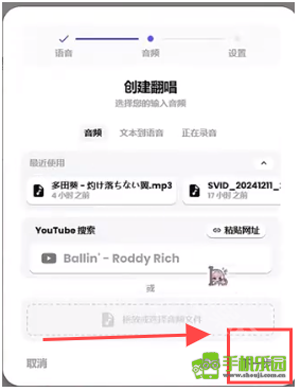 10、导入音乐:在“创建翻唱”中导入想要翻唱的音乐。注意:如果导入失败,可将音乐格式由 .mp3 转换为 .wav。