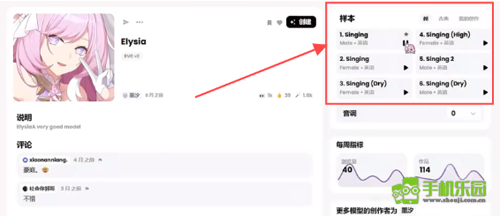 8、试听模型效果:找到角色模型后点击封面进入,在右侧可以试听模型唱歌效果。