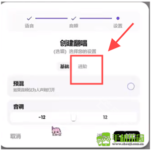 12、进阶设置:在“创建翻唱”中点击“进阶”。