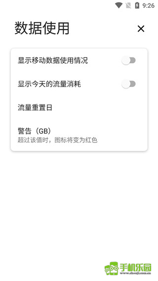 4、在数据使用功能板块里,用户能够开启显示移动数据使用情况、流量消耗量等功能;