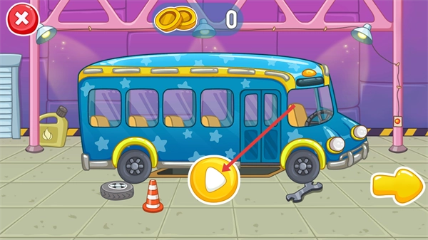 儿童汽车修理店运用卡通风格的画面设计,色彩明快亮丽,契合儿童的审美偏好,能够有效吸引孩子们的目光。