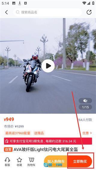 4、在商品详情页,点击底部的【立即购买】按钮,就能进入这款头盔商品的下单购买流程。