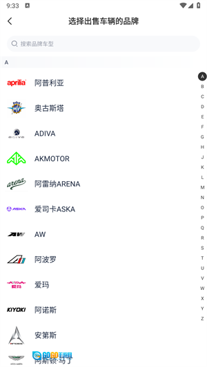 2、首先需要选择自己需要出售车辆的品牌。