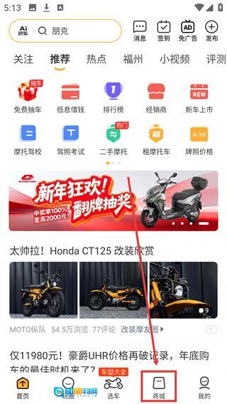 1、在首页中点击组摩托车。