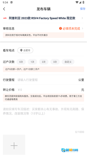 5、最后输入车辆相关信息,像过户次数、使用地点、行驶里程、价格等内容,就可以发布了。