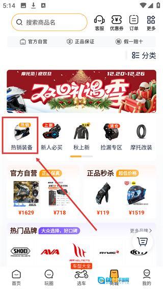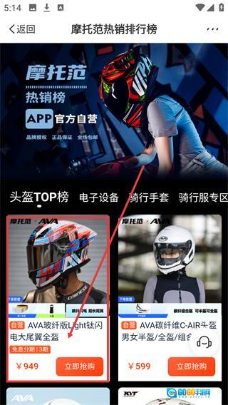 进入【商城】页面后,点击【热销装备】分类,就能进入摩托范热销排行榜的商品列表界面。
