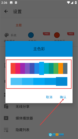 4、在选定目标颜色之后,点击【确认】按钮,即可完成主题色彩的设置。