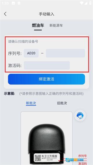 3、进入【手动输入】页面,需在【序列号】【激活码】输入框中,填写对应设备的信息,以便完成绑定。