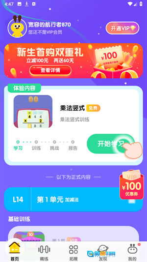 1、打开软件进入首页,点击开始学习就能学习各种知识。