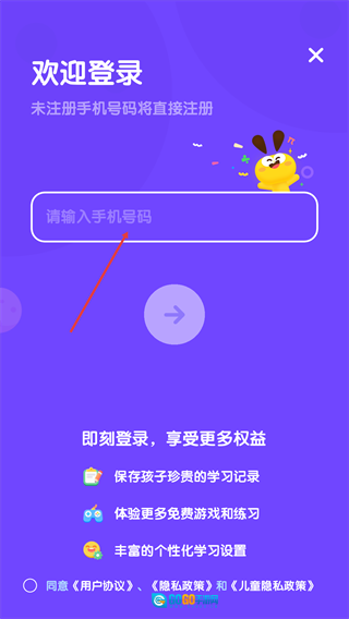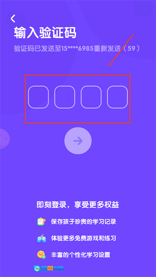3、在输入框中,填写对应的手机号码后,点击下方箭头按钮。