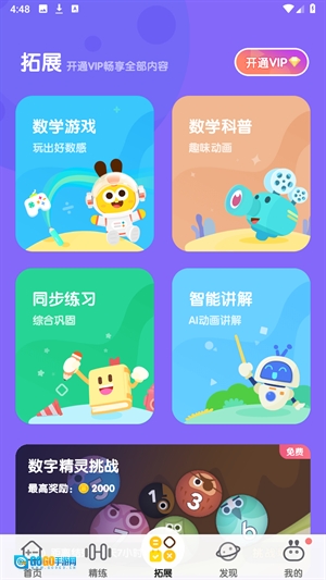 3、拓展里将游戏与知识点相结合,更能激发孩子的学习天性。