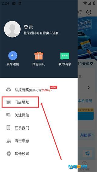 2、展开菜单后,找到【门店地址】选项可进入对应页面查看门店信息。
