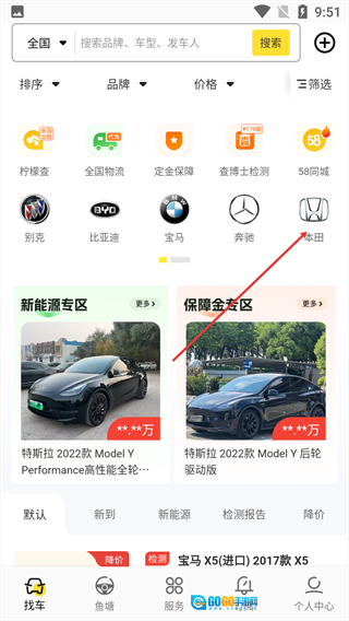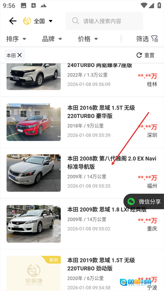 1、点击品牌图标,可进入该品牌对应的车源列表页面。