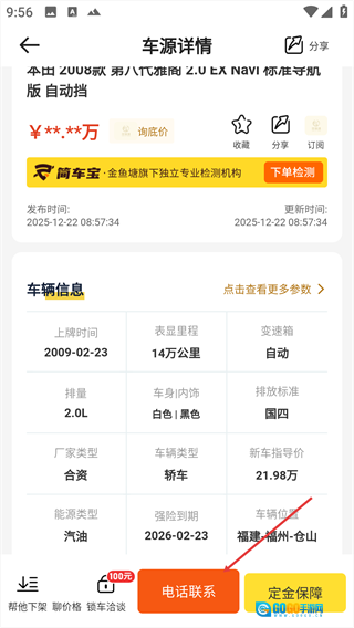 2、选择目标车源条目,进入详情页面。