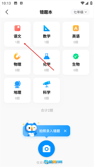 1、在首页找到【错题本】功能入口并点击,进入该功能页面。