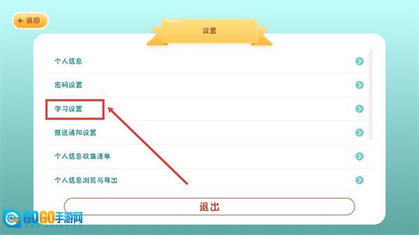 3、在【设置】界面中,选择【学习设置】,即可进入对应的设置页面。
