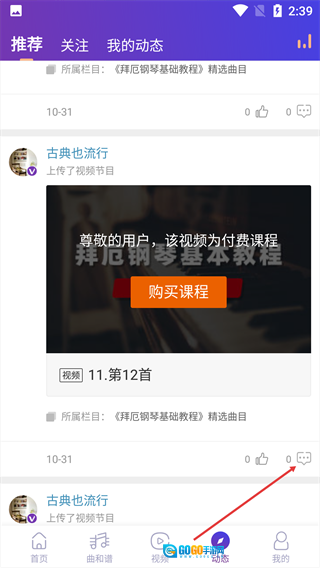 2、在动态页面中,找到想要评论的动态,点击其评论按钮。