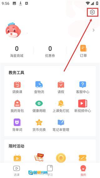 在课程界面的底部区域,点击【我的】按钮,即可进入个人中心页面。