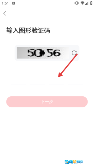 2、进入图形验证码页面后,准确输入显示的验证码,接着点击【下一步】按钮。