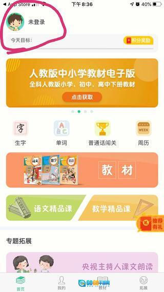 1、在本站安装人教点读,打开后会显示未登录。