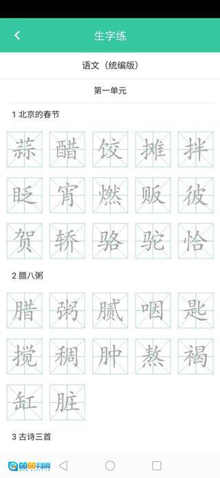 8、点击生字进入生字学习页面。