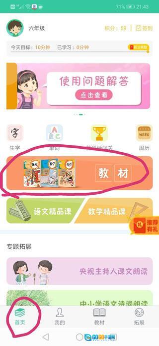 4、注册登录成功后,进入首页,点击教材。