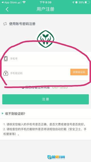 3、使用手机登录,点击获取验证码,再点击注册。