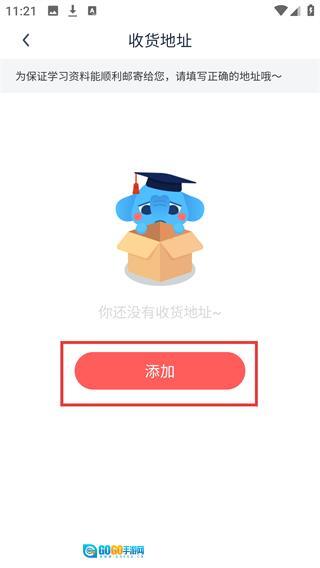 3、进入【收货地址】页面后,要是还没有保存的地址,点击【添加】按钮,就能打开新建收货地址的填写页面。