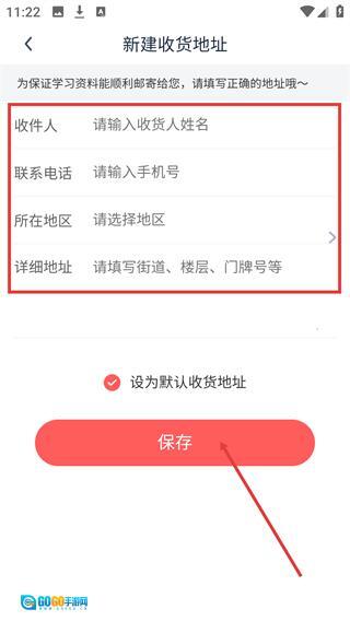 4、进入【新建收货地址】页面,填写好收件人、联系电话等相关信息,之后点击【保存】按钮,就能完成地址的添加操作。