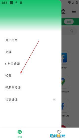 1、打开GBox应用,点击界面右上角的菜单按钮,展开功能选项列表。