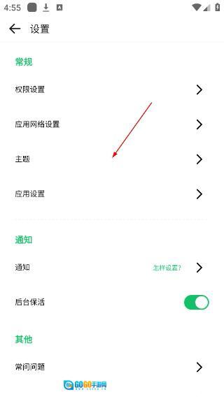 3、在设置页面中,点击【主题】选项,进入主题设置界面。