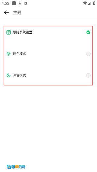 4、在主题界面,可选择“跟随系统设置”“浅色模式”“深色模式”中的任意选项,切换应用的显示主题风格。
