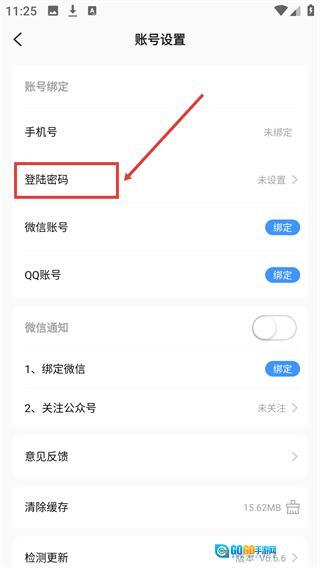 3、进入【账号设置】页面后,找到并点击【登录密码】选项,即可进入密码设置的操作界面。
