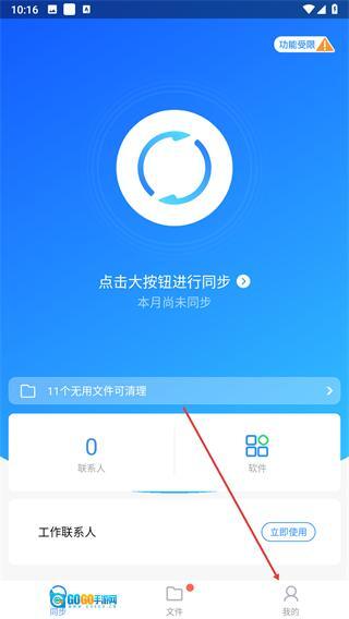 1、进入QQ同步助手的同步页面,点击底部导航栏中的“我的”选项,即可进入个人页面。