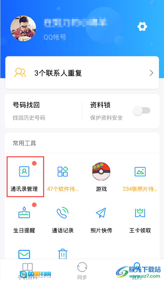 QQ同步助手合并姓名或号码重复联系人的方法
