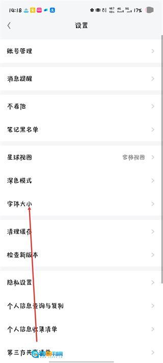 3、进入设置页面后,找到字体大小的相关选项,点击该选项即可进入字体大小的调整界面。