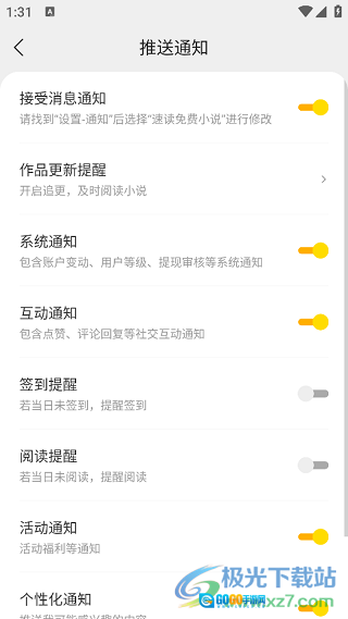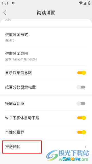 4、接着在弹出的新页面里,向上滑动屏幕,找到并点击页面底部的“推送通知”选项。
