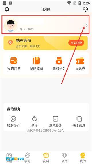 2、进入对应页面,按照提示箭号,点击个人信息。