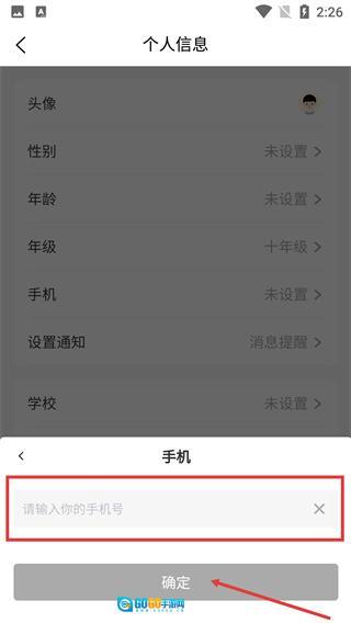 4、点击【手机】选项后会弹出输入框,在显示“请输入你的手机号”的输入框中填写手机号码,随后点击【确定】按钮,就能完成手机相关设置。