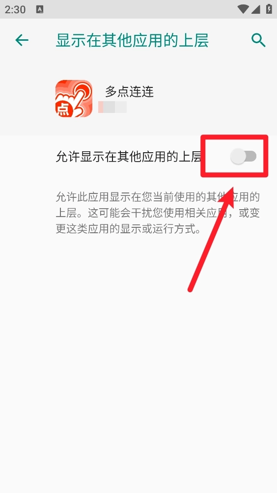 3、如图所示,系统会自动跳转至悬浮窗设置页面,开启对应的开关后返回主界面即可。
