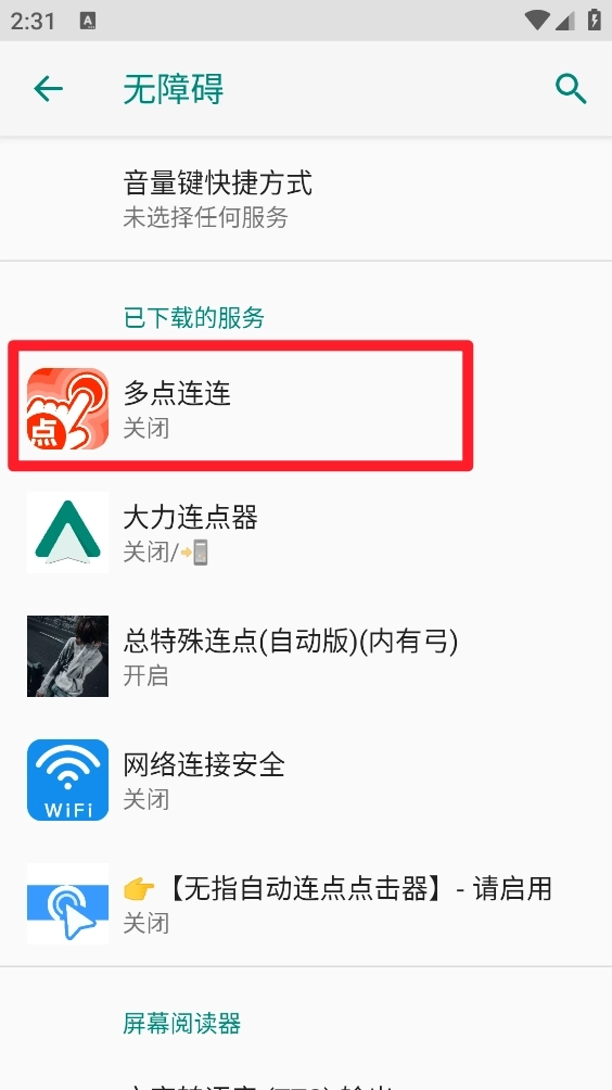 5、进入无障碍页面,打开多点连连。