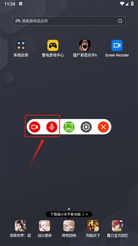 3、然后就可以看到一个录制的悬浮窗,在录制内部音频时将麦克风功能开启,再点击摄像头图标开始录制