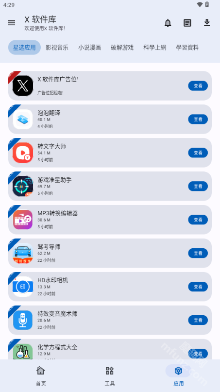 X软件库是一款专业的软件资源更新工具,拥有相当丰富的资源储备。这里汇聚了海量应用资源,覆盖游戏、工具、生活娱乐等多种类型,不管你需要哪类应用,都能在这款X软件库最新版中找到;而且它的更新效率极高,每天都会实时为用户新增和更新各类优质资源!