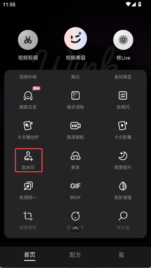 1、在首页找到加水印功能,点击进入